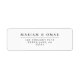 Elegant minimal white wedding return address label that you can personalize and send out for your wedding party celebration. The bride and grooms name and address are set using stylish classic font typography. Text colors can be changed using the edit menu.