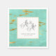 This luxurious paper napkin conveys modern elegance with its mint and gold abstract marbled pattern with faux foil gold veining. Edit the bride and groom's name and wedding date in the easy to use design template.
