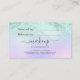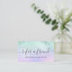 Stylish makeup artist referral card design with gradient mint green faux glitter marble texture, pastel purple background and elegant calligraphy font.