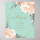 Elegant Mint Green Gold Blush Peach Floral Wedding Poster