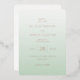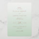 This elegant Foil Invitation features a modern and minimalist design with a soft gradient background transitioning from pale mint green to a slightly darker shade. The color palette of muted pastels, including mint green and rose gold, creates a sophisticated and warm atmosphere. The layout is vertically aligned, emphasizing refined typography with a mix of bold serif fonts for names and delicate script for special phrases, ensuring clarity and aesthetic appeal. Perfect for a wedding, this invitation conveys an understated elegance, making it ideal for couples seeking a classic yet contemporary look for their big day.