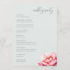 This wedding program features a minimalist and elegant design with a soft pastel color palette of light mint green and blush pink. The layout is balanced, with ample negative space around the flowing cursive script for names and a clean serif font detailing the ceremony schedule. A large, detailed watercolor-style peony flower adds a touch of natural elegance to the bottom right corner, enhancing the romantic and refined theme. Perfect for a formal event, this design conveys a serene and sophisticated atmosphere, ideal for celebrating love and commitment.