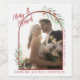 Minimalist Elegant Chic Merry and Married Mistletoe Newlyweds Arch Photo Christmas Wine Gift Tag Labels Stickers - An elegant and festive one photo Christmas wine gift tags labels with watercolor winter greenery in classic red and green holiday colours. Perfect for newlyweds giving their first Christmas together wine gifts to family and friends. Personalise by adding your own wedding photo. All text is editable.