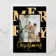 Elegant Modern 2 Photo Merry Christmas Script Foil Holiday Card.