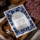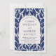 Elegant floral oil painted pattern wedding Invitation with arch in navy blue colours.