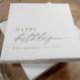 Celebrate in elevated style with these gold personalised birthday party napkins featuring an elegant “happy birthday” script design. The modern minimalist layout pairs graceful script lettering with clean typography for a look that feels both simple and stylish.