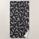 Elegant modern black and white beach towel featuring scattered, abstract white stripes on the black background.