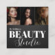 Elegant Modern Black Beauty Salon 3 Photo Square Business Card