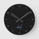 Elegant Modern Black Blue Script Monogram round clock. An elegant blue script monogram combined with a clean white san-serif font makes for a contemporary look.