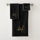 Elegant Modern Black Gold Script Monogram Bath Towel Set