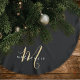 Elegant Modern Black Gold Script Monogram Brushed Polyester Tree Skirt
