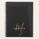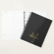Elegant Modern Black Gold Script Monogram Planner. An elegant gold script monogram combined with a clean white san-serif font makes for a contemporary look.