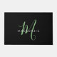 Elegant Modern Black Green Script Monogram Doormat. An elegant green script monogram combined with a clean white san-serif font makes for a contemporary look.