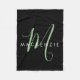 Elegant Modern Black Green Script Monogram Fleece Blanket