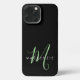 Elegant Modern Black Green Script Monogram Phone Case. An elegant green script monogram combined with a clean white san-serif font makes for a contemporary look.