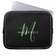 Elegant Modern Black Green Script Monogram Laptop Sleeve