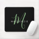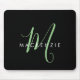 Elegant Modern Black Green Script Monogram Mouse Pad
