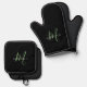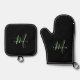 Elegant Modern Black Green Script Monogram Oven Mitt & Pot Holder Set