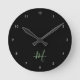 Elegant Modern Black Green Script Monogram round clock. An elegant green script monogram combined with a clean white san-serif font makes for a contemporary look.