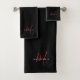 Elegant Modern Black Red Script Monogram Bath Towel Set