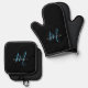 Elegant Modern Black Sky Blue Script Monogram Oven Mitt & Pot Holder Set