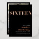 Elegant Sweet Sixteen Birthday Party invitation template featuring Black background & modern typography.