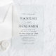 This timeless invitation design combines sleek monochromatic tones with clean, sophisticated typography. The striking black and white palette exudes modern elegance, while the minimalist layout keeps the focus on your special day. Perfect for couples who value simplicity and style, this invitation is the epitome of understated luxury, setting the tone for a chic, unforgettable celebration. Make a bold statement with an invitation that perfectly reflects your love story—modern, elegant, and uniquely yours.