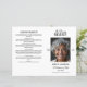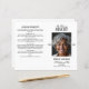 Affordable celebration of life bifold programs with a clean black and white layout offering a dignified and budget-friendly option for memorial services. This funeral program design includes a large front photo with fully editable elegant serif and script typography on a minimalist white background. Inside, the layout is thoughtfully divided to include a suggested order of service and obituary section, and the back has space for acknowledgements or any other text, providing all essential content in a single folded card. Ideal for families seeking budget funeral printing solutions without compromising on style or personalisation, this simple and tasteful design ensures a respectful tribute that’s both economical and beautifully presented.
