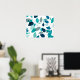 Elegant Modern Blue and Green Leaves Pattern | Poster