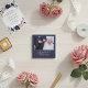 A favour wedding magnet with a wedding photo, bride and groom names and wedding date. Personalise with your wedding photo and other details. The text is in a script and the background is dark navy blue. An elegant and stylish thank you magnet - great as a gift for your wedding guests.