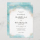 Elegant Modern Blue Watercolor Gold Wedding Invitation
