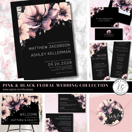 Chic Elegant Modern Black Pink Floral WeddingDesigned by Jo P.
