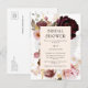 This is an elegant and glamourous blush pink and burgundy floral bridal shower invitation on a convenient postcard to celebrate the bride-to-be! Using a design of modern and chic pink and burgundy florals with gold accents, edit all of the text as required using the provided template and celebrate the bride’s upcoming nuptials in style.
