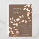 Elegant Modern Botanical Leaves Rose Gold Wedding Invitation. Rose Gold foil greenery and a warm brown background. Add an additional wedding information on the back of the card and you have the option to customise the back colour. For enquiries about custom design changes by the independent designer please email paula@labellarue.com BEFORE you customise or place an order.