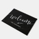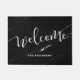 Minimal and modern personalized doormat which features black marble and elegant handwritten script lettering. A perfect gift for new homeowners or newlyweds.
