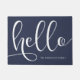 Elegant modern calligraphy black & navy blue hello doormat