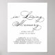 This elegant modern calligraphy in loving memory sign is perfect for a rustic wedding or bridal shower. The simple and stylish design features classic and fancy script typography in black and white.