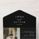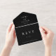 This all-in-one invitation features a clean and simple block serif typography font and calligraphy on a black background. The simplicity of this design adds a touch of elegance to your wedding and works well with all wedding themes and definitely a great addition to your wedding. Just customise the names and wording in a few easy steps and personalise the all-in-one invitation card with your photo of the happy couple and type in the QR Code to give your invitation a nice personal touch. This invitation will save you money to send everything at once. It has a perforated RSVP postcard can be easy to tear off and your guest just sends it to you. Just simply fold each card into the outlined shape -- seal and send to your guests. No envelope is needed for shipping -- just postage.