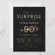 Modern classy surprise birthday invitation features stylish script and typography with your party details in sophisticated white, black and gold, simple and elegant, Great for 90th birthday party or any other age,
