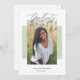 This stylish graduation photo announcement card features elegant typography reading, "Graduate" at the top, with a colour block (in light sage green) behind the photo template. Two little matching colour lines set off the text at the bottom. The back of the card contains another photo template, as well as more text templates for further personalisation. Send these simple, modern styled announcements to family and friends to celebrate your grad!
