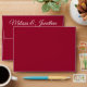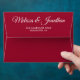 Create to match our "Delicate Orchids - Crimson Red wedding suite", this envelope features the bride and groom's names and return address in a romantic and elegant white script over a Crimson red background. The inside of the envelope features a classy dusty red colour. These envelopes can also be used for any other special event, such as bridal showers, rehearsal dinners, anniversaries, birthdays, and much more.
