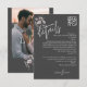 Introducing our customisable wedding details enclosure card, designed for the modern couple seeking elegance and simplicity. This beautifully crafted card features a clean, sophisticated look included a space for your own favourite couple photo. Maybe from the engagement or a photo of the venue. A romantic and personal card with elegant modern script text in white text on dark grey background, a timeless design.