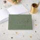 A modern typography for your wedding stationery: choose this simple and elegant wedding suite. Elegant and striking with a sage green and gold foil cover.