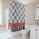 Elegant black and white deco damask shower curtain. Matching towel sets available.