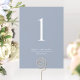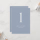 Help your guests find their table with this elegant modern table number. Double sided cards in case you like to use it in clear frames or table holders that can be seen from front and back. Dusty blue background colour with text in white. NOTE: please add and individual order for each table number (i.e. for an event with three tables, you would need to place and order with table number one, add into shopping cart, then come back add number two for table two, add into shopping cart, come back and add number 3 for table number three, add into shopping cart, and now that order is complete proceed to payment). Part of our "Elegant Bliss" collection with a variety of coordinating products available like seating chart cards.