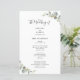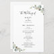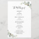 watercolor eucalyptus foliage and black text. You can personalise the text and colours on this wedding program template.
