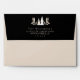 Our envelope features a charming arrangement of hand-drawn evergreen trees, each illustrated in a unique shape and adorned with intricate detailing. The festive phrase “Fa La La” is showcased in an elegant handwritten script, adding a playful yet sophisticated touch. Crafted in a warm cream beige exterior with a bold black envelope flap, this design creates a striking and contemporary contrast. Personalise the flap with your family name and return address for a truly custom look. For an added layer of luxury, the envelope interior is lined with our signature evergreen tree and floral motif, beautifully printed against a rich black background, perfectly coordinating with the rest of the Gilded Evergreen holiday collection.