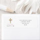Elegant Modern Floral Religious Cross Baptism Return Address Label.