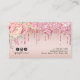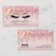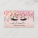 This beautiful lashes & brows business card design features faux rose gold dripping glitter metallic texture, flowers, eyelashes and elegant calligraphy font.