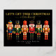 Add a touch of festive sparkle to your holiday greetings with our Elegant Modern Funny Black Nutcracker Christmas Foil Holiday Card. Designed with a row of 6 colourful and quirky Nutcrackers against a crisp white background, this christmas card is both playful and stylish. The phrase "Let's get this Christmas Cracking" shines at the top, with "Let's get this Christmas" elegantly rendered in foil text and "Cracking" in a graceful script font, adding a sophisticated flair to the humour.